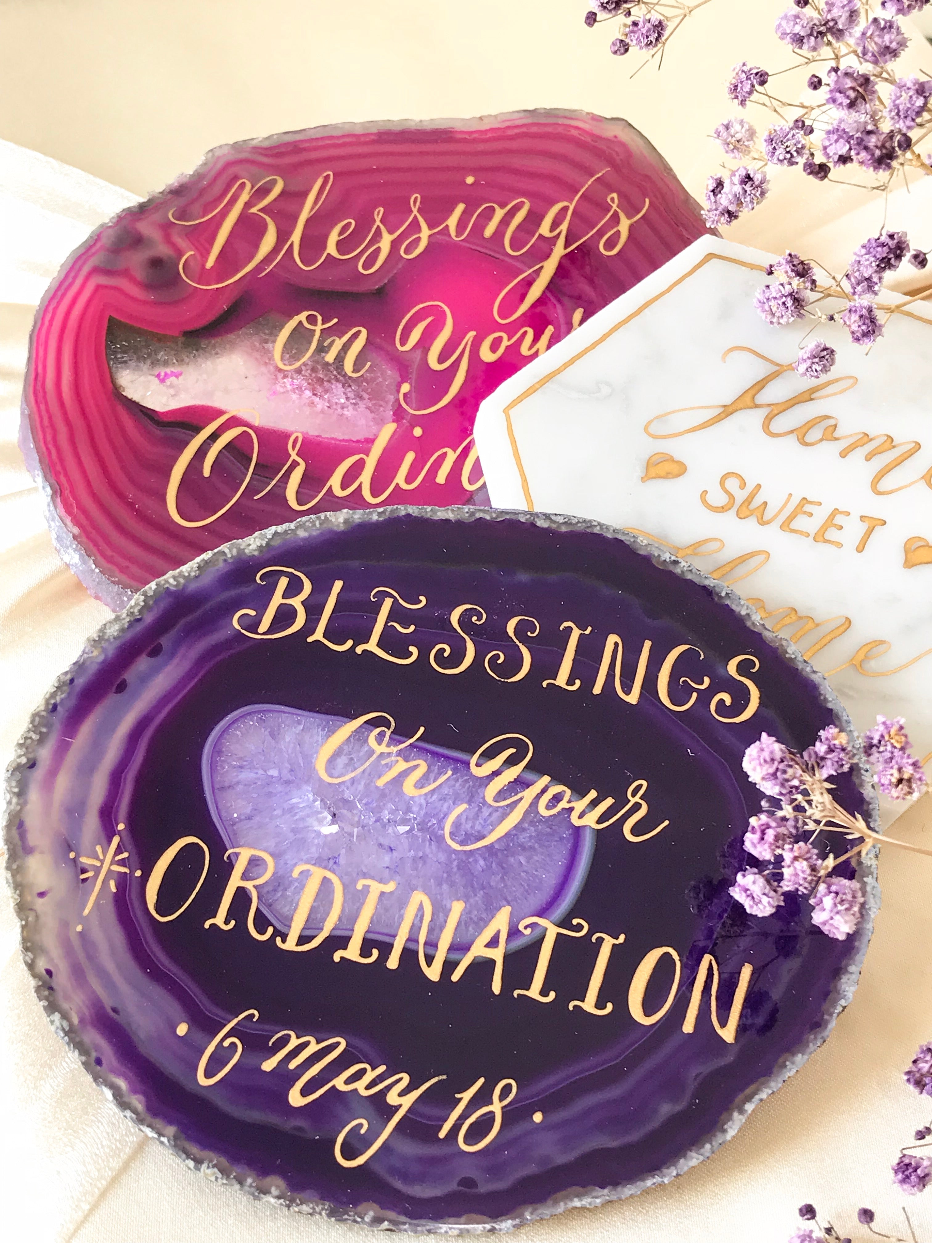 Wedding Gift - Agate Coaster Writing